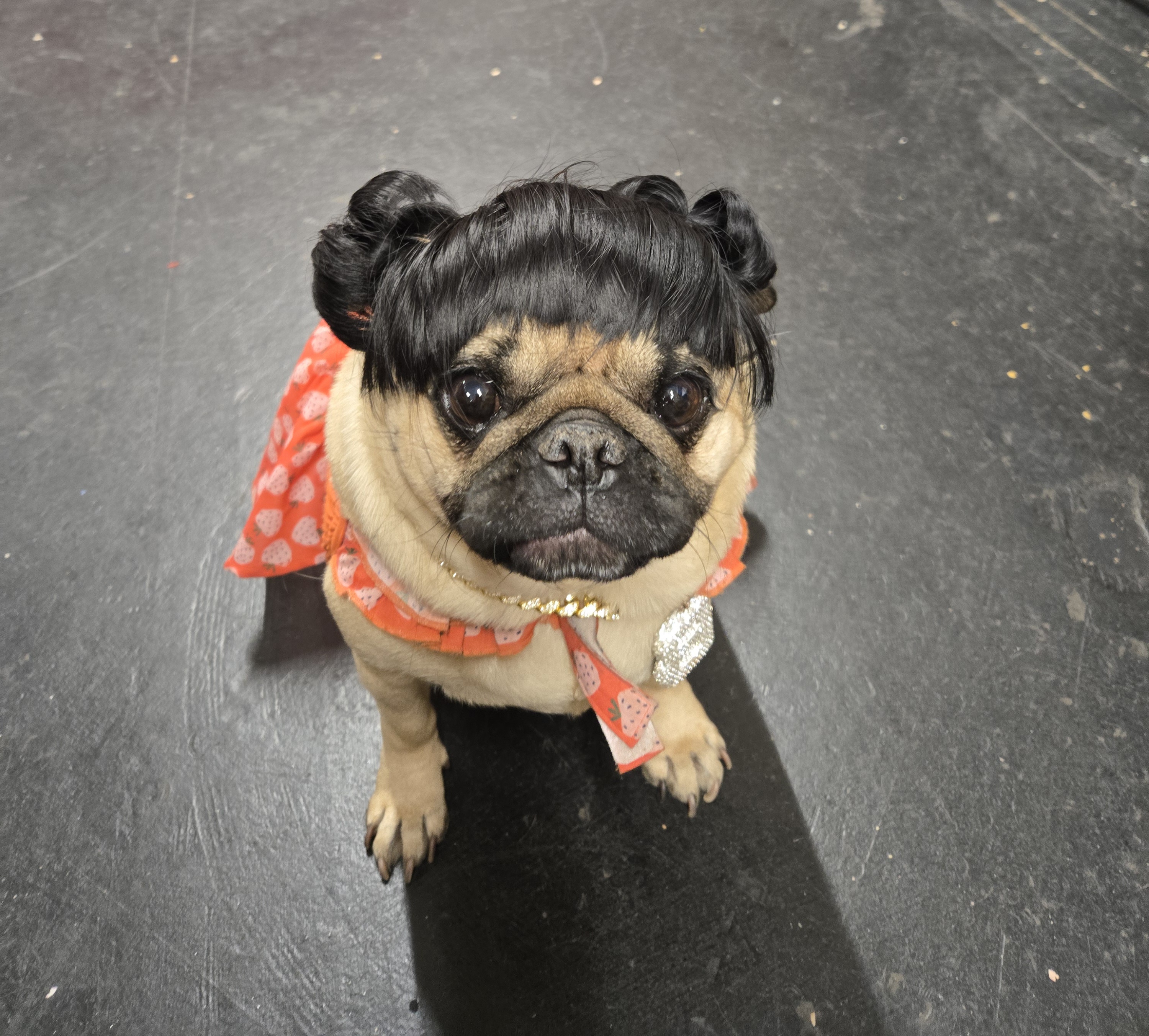 Likes: Pets, cookies, treats, food, snacks, other dogs (when they’re inside), wearing dresses