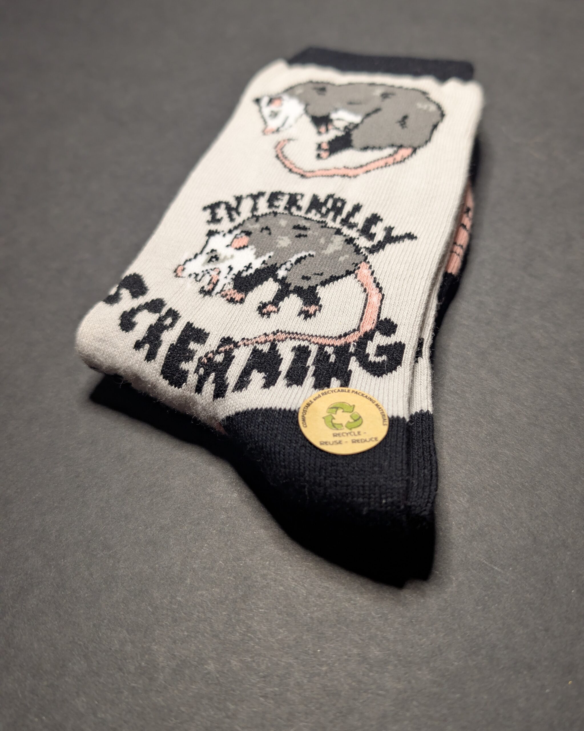 Feeling the stress? So are these opossums. Let them dress up your wardrobe while perpetually screaming. These socks come from the comfort-conscious OOO YEAH.
